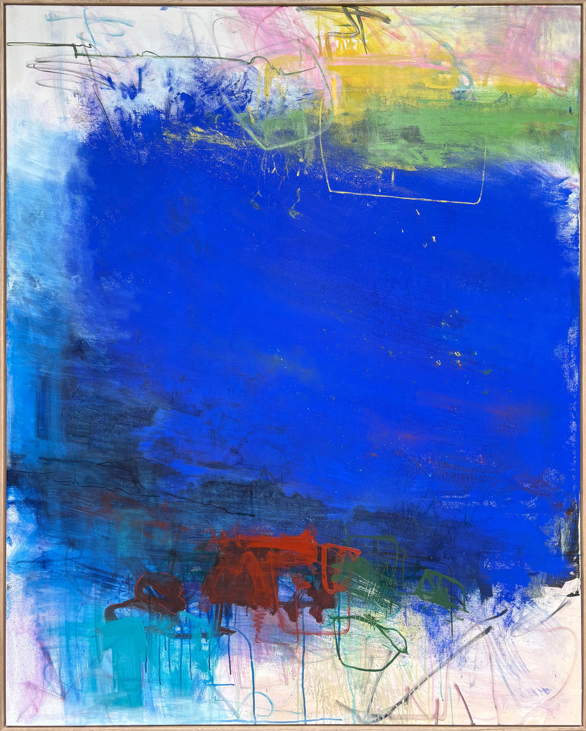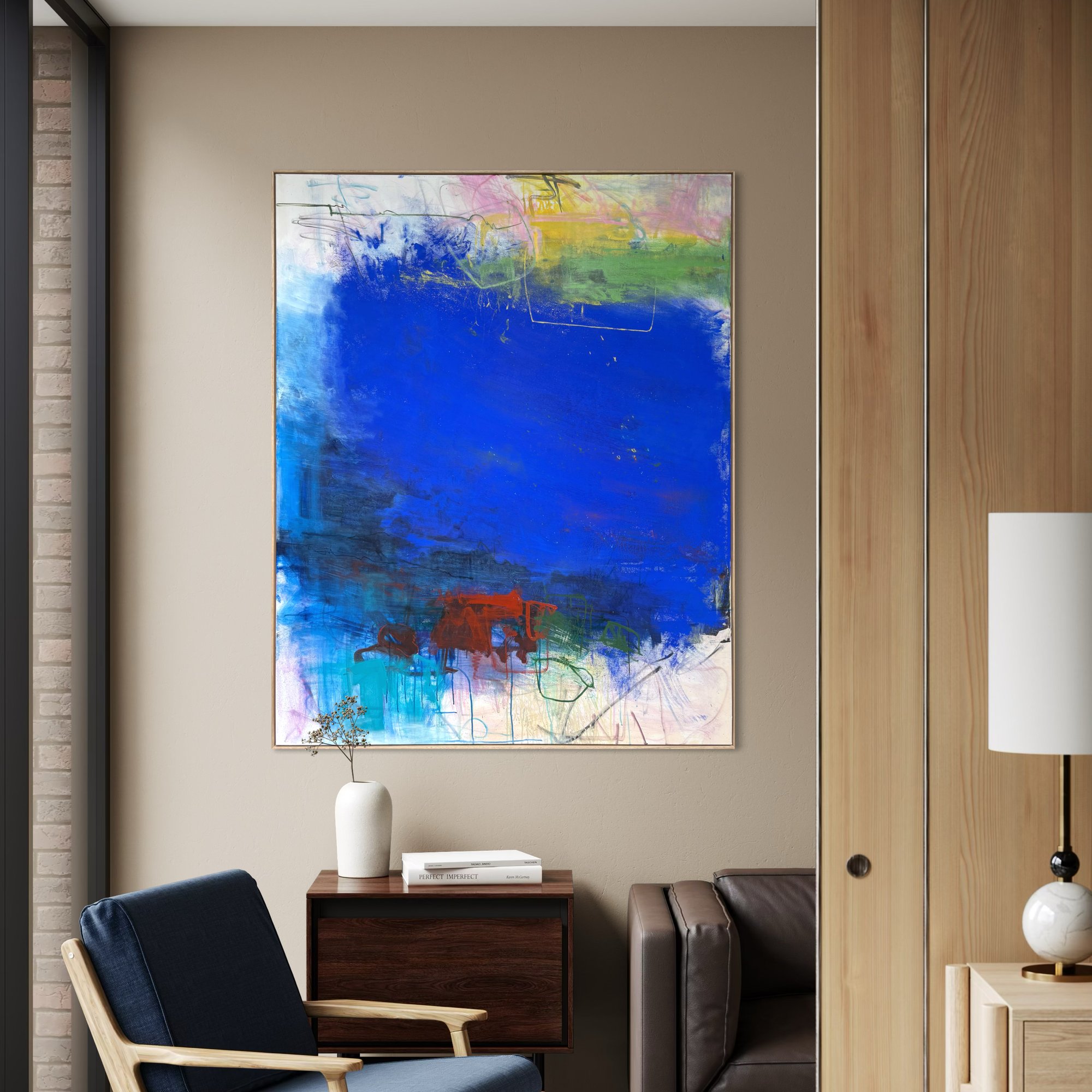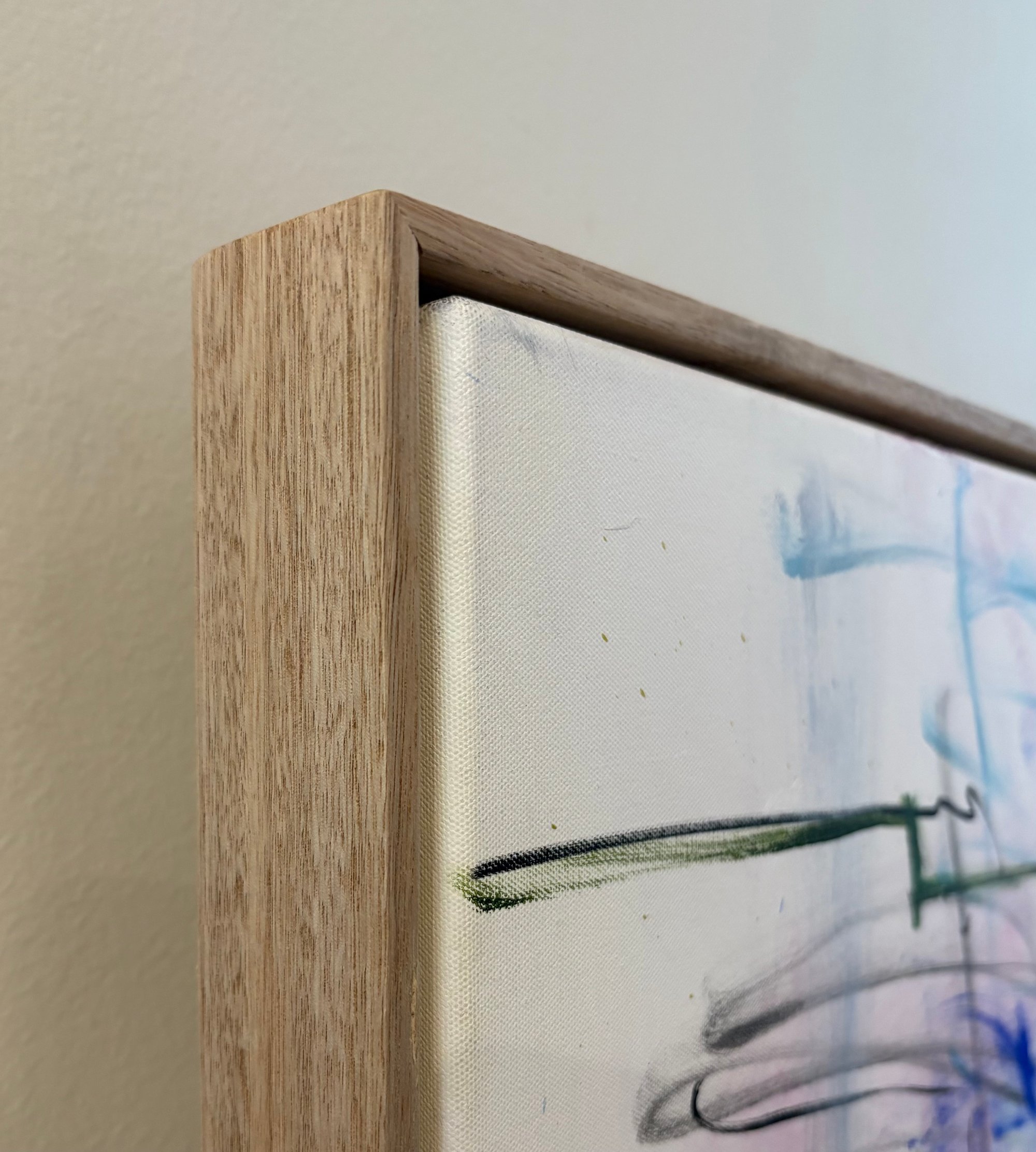 This original abstract artwork was inspired by Sydney's coastline. It has been painted with many layers of professional quality acrylic paint and medium to give it depth and richness. It has been framed using a high quality Tasmanian oak. The painting has been signed on the back.