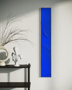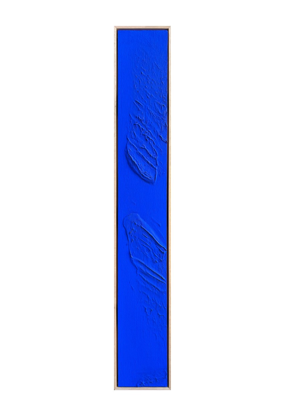 This unique and contemporary abstract painting breaks new ground with a captivating explosion of different tones of blues and texture, inspired by the vast sea. The unconventional approach draws the viewer in, inviting exploration of the enigmatic composition. Signed discreetly on the back, the artwork encourages individual interpretation, making it engaging and thought-provoking. Framed in elegant oak, this creation leaves a lasting impression on anyone who beholds it.