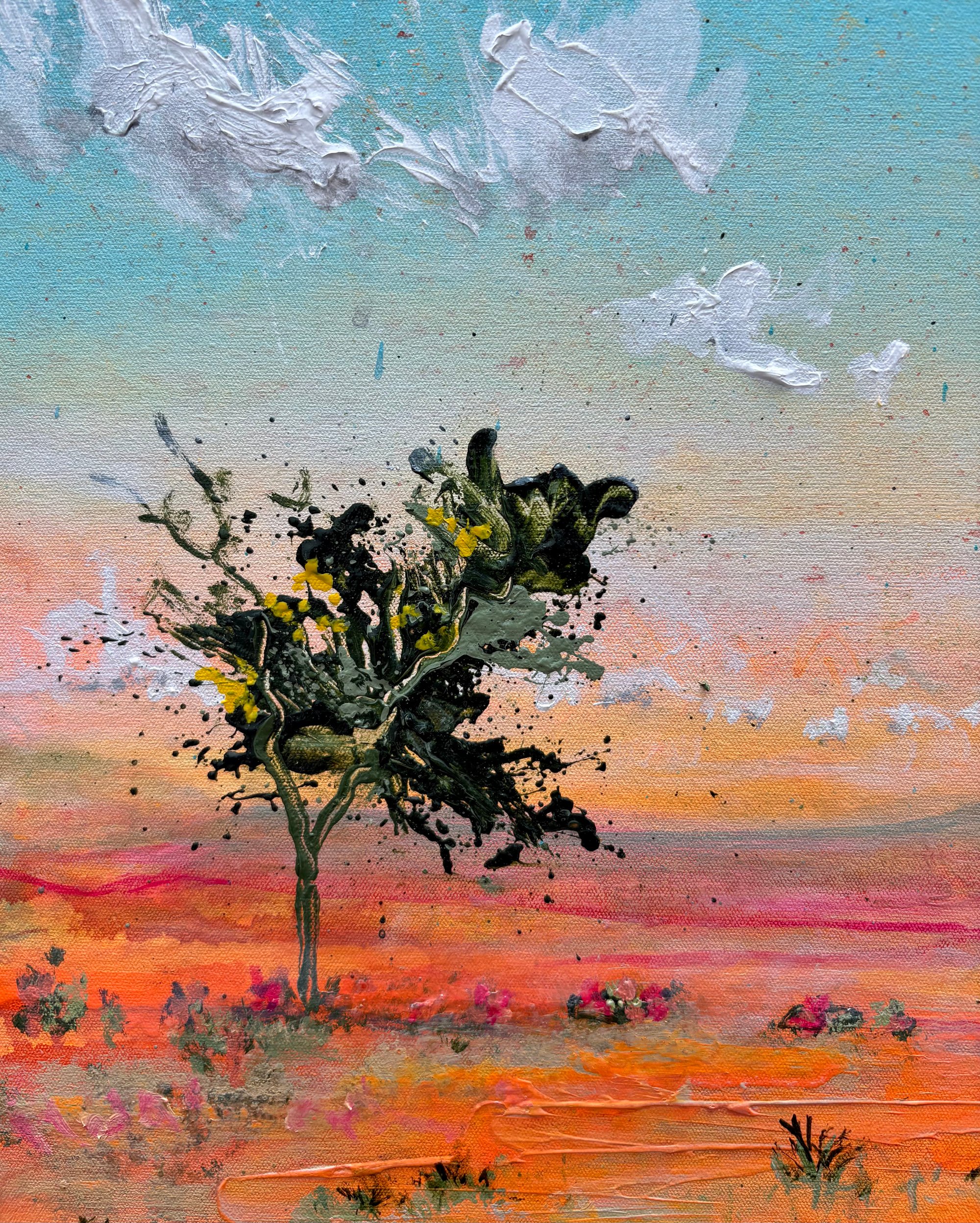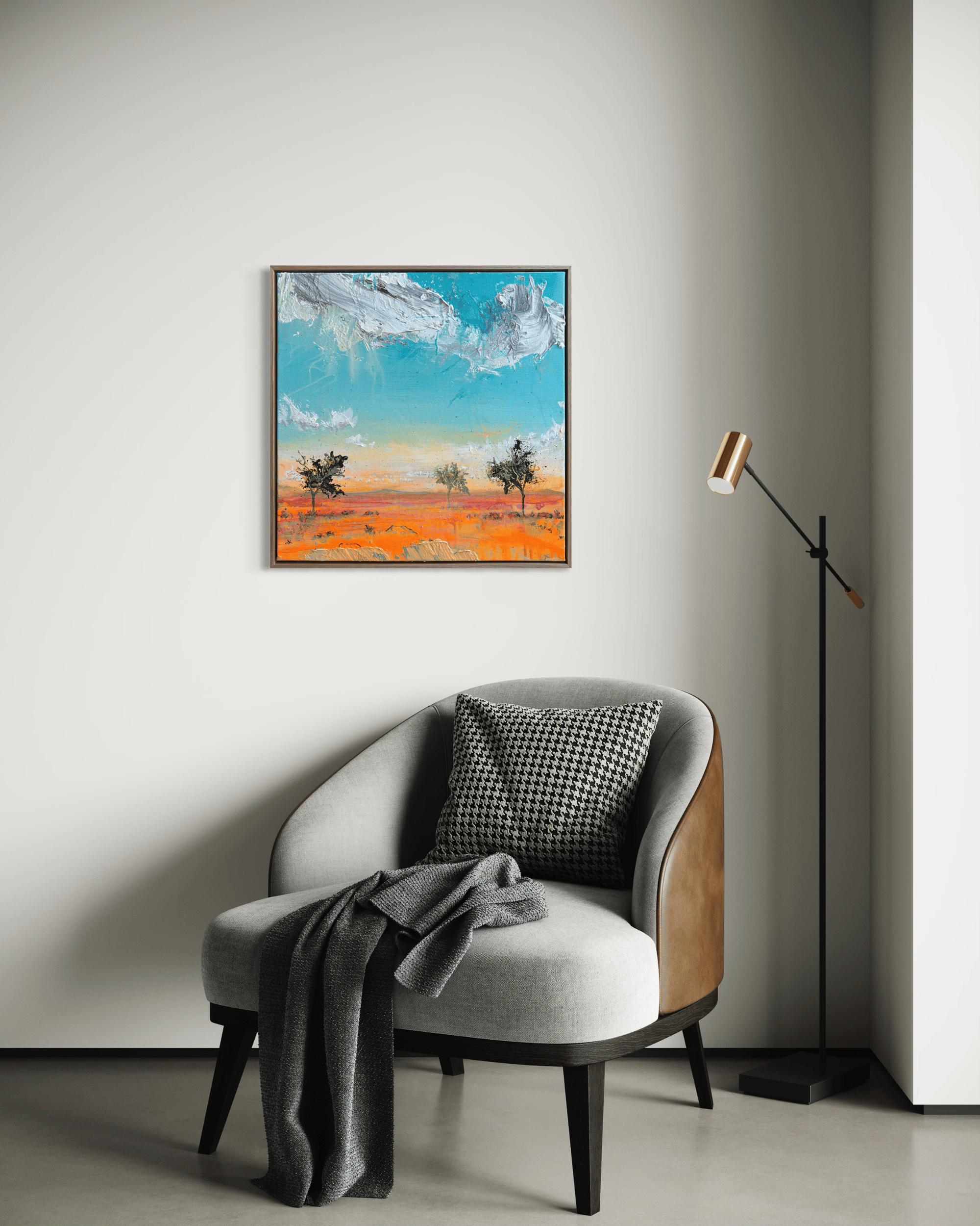 In this series, Charles explores a deep connection to the Australian landscape, drawn to three defining elements: expansive skies, vast land, and the enduring presence of gum trees. Working in a landscape impressionist style with bold, expressive colour, he captures the heat, light and atmosphere that shape the country’s character. The works speak to space and resilience — endless horizons, grounding terrain, and gum trees standing steadfast within it all.