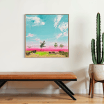 In this series, Charles explores a deep connection to the Australian landscape, drawn to three defining elements: expansive skies, vast land, and the enduring presence of gum trees. Working in a landscape impressionist style with bold, expressive colour, he captures the heat, light and atmosphere that shape the country’s character. The works speak to space and resilience — endless horizons, grounding terrain, and gum trees standing steadfast within it all.